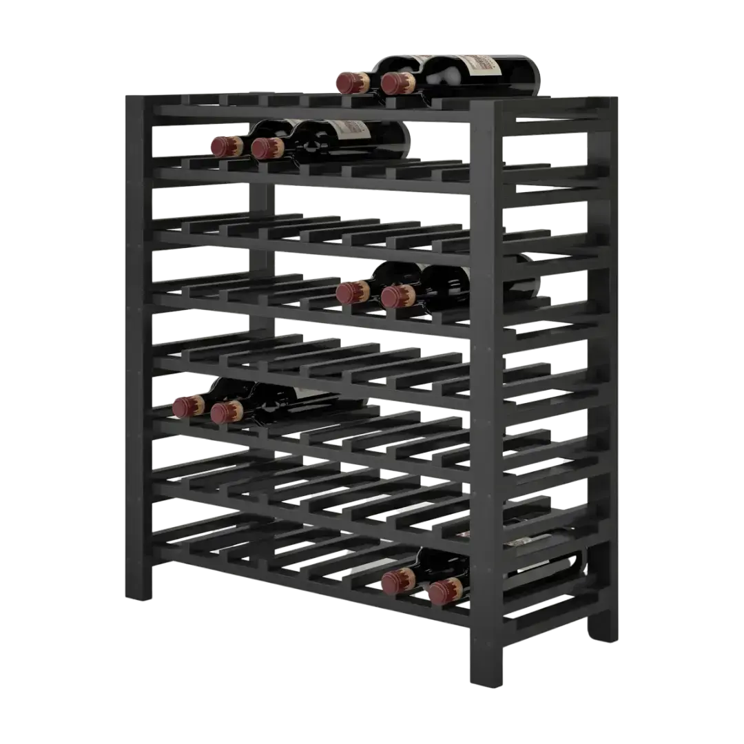 En meget stabil og præsentabel vinreol fremstillet i sort træ.