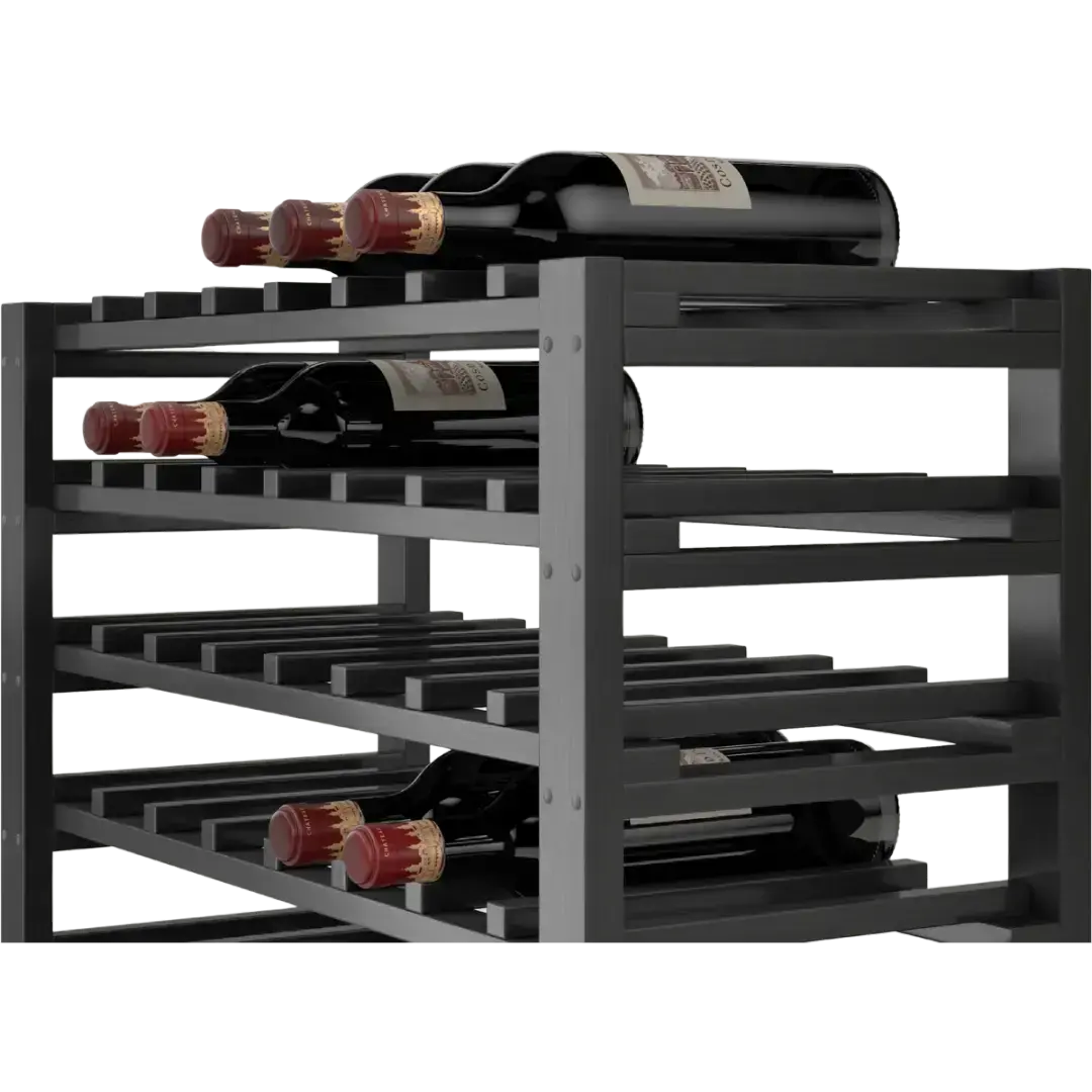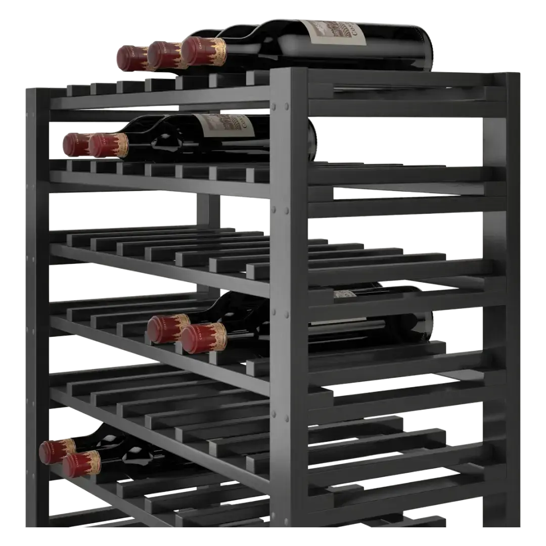Denne vinreol er primært til Bordeaux og Bourgogne flasker, men der kan være enkle rum, hvor der er plads til champagne. På den øverste hylde kan der ligge alle typer flasker.